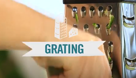 Let’s look at how to teach children to grate ingredients safely and effectively. Click the icon to go to the grate snippet video.