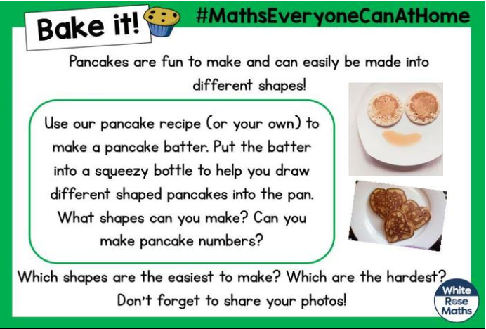 Below see other links of how you can begin cooking or baking at home with your children. Skills learned through cooking can support other areas of development such as counting, weighing, designing and reading.